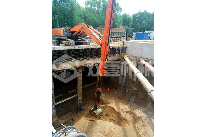 雙壹公司備有多臺長臂挖掘機,15-200米各種長度,一站式解決您的深坑挖掘難題。