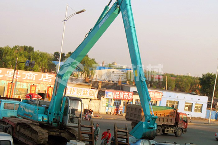 加長臂:加長臂是我們最常見,使用時間更早的大小臂加長臂,不需要伸縮缸控制。它通過大臂、小臂同時加長,配帶小挖斗,擴大機械的工作范圍。